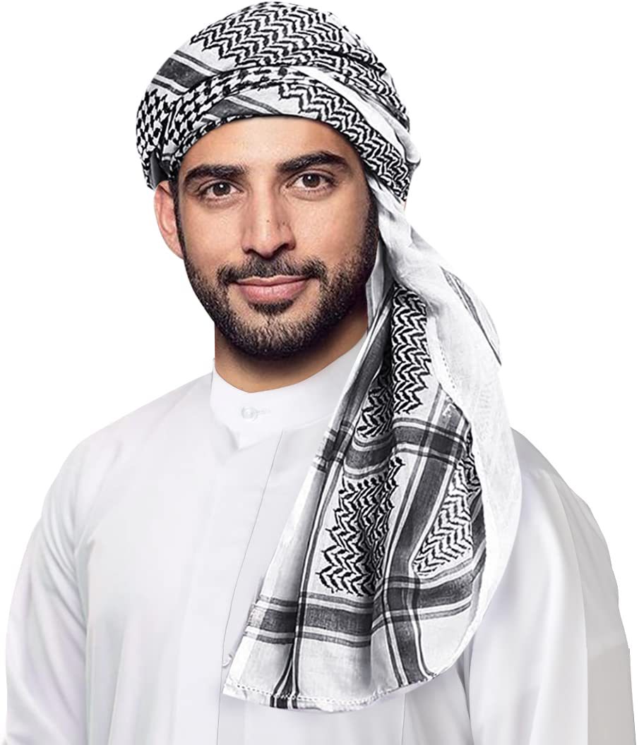 男士长款民族风方形头巾,涤纶编织,透气,夏季户外佩戴,阿拉伯迪拜沙特设计
